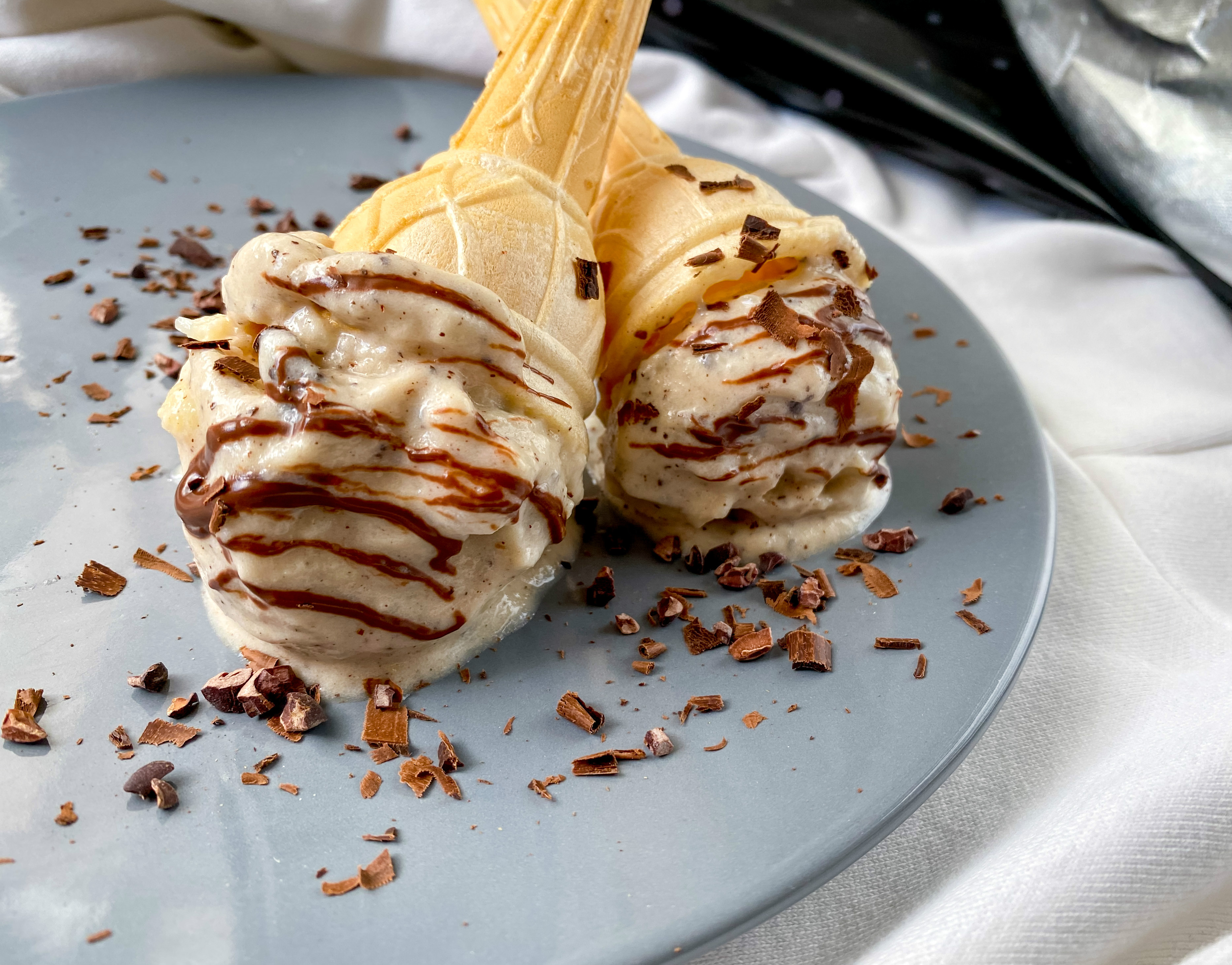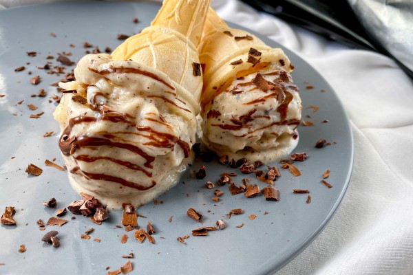 Przy użyciu gałkownicy nakładamy na wafelki po 1 gałce lodów.